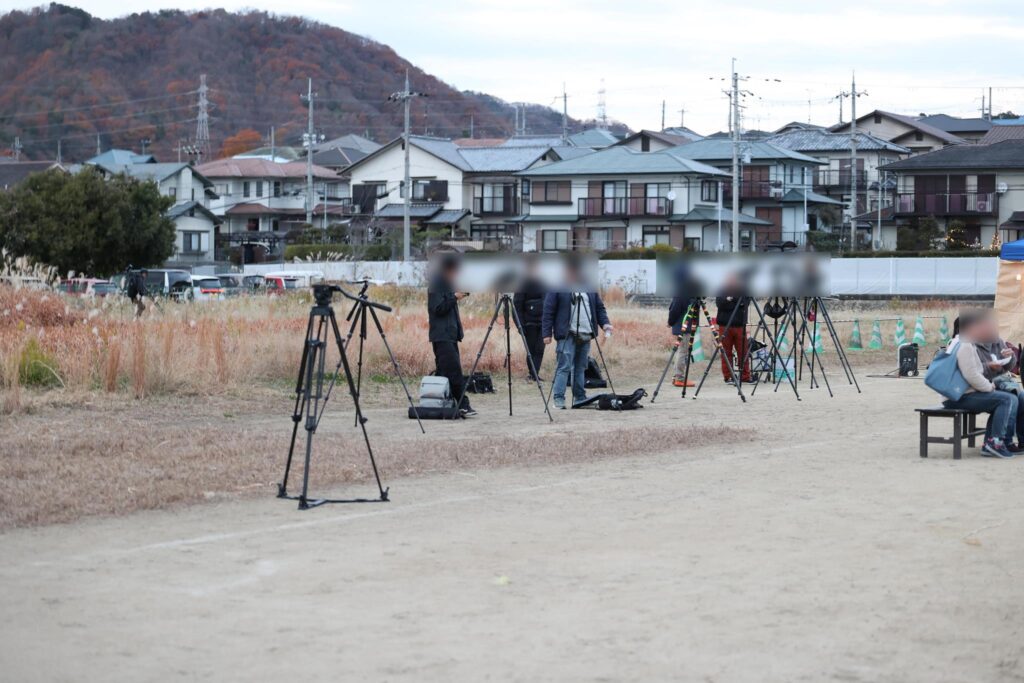 花火カメラマンの三脚の群れを眺めながら、