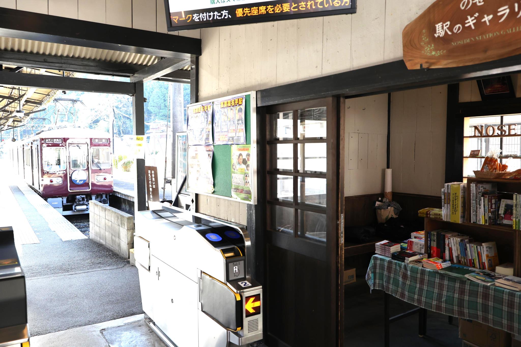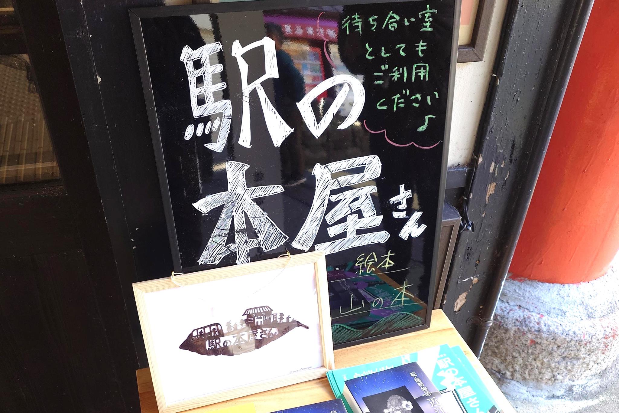 妙見口駅の待合室を使った本屋さん。