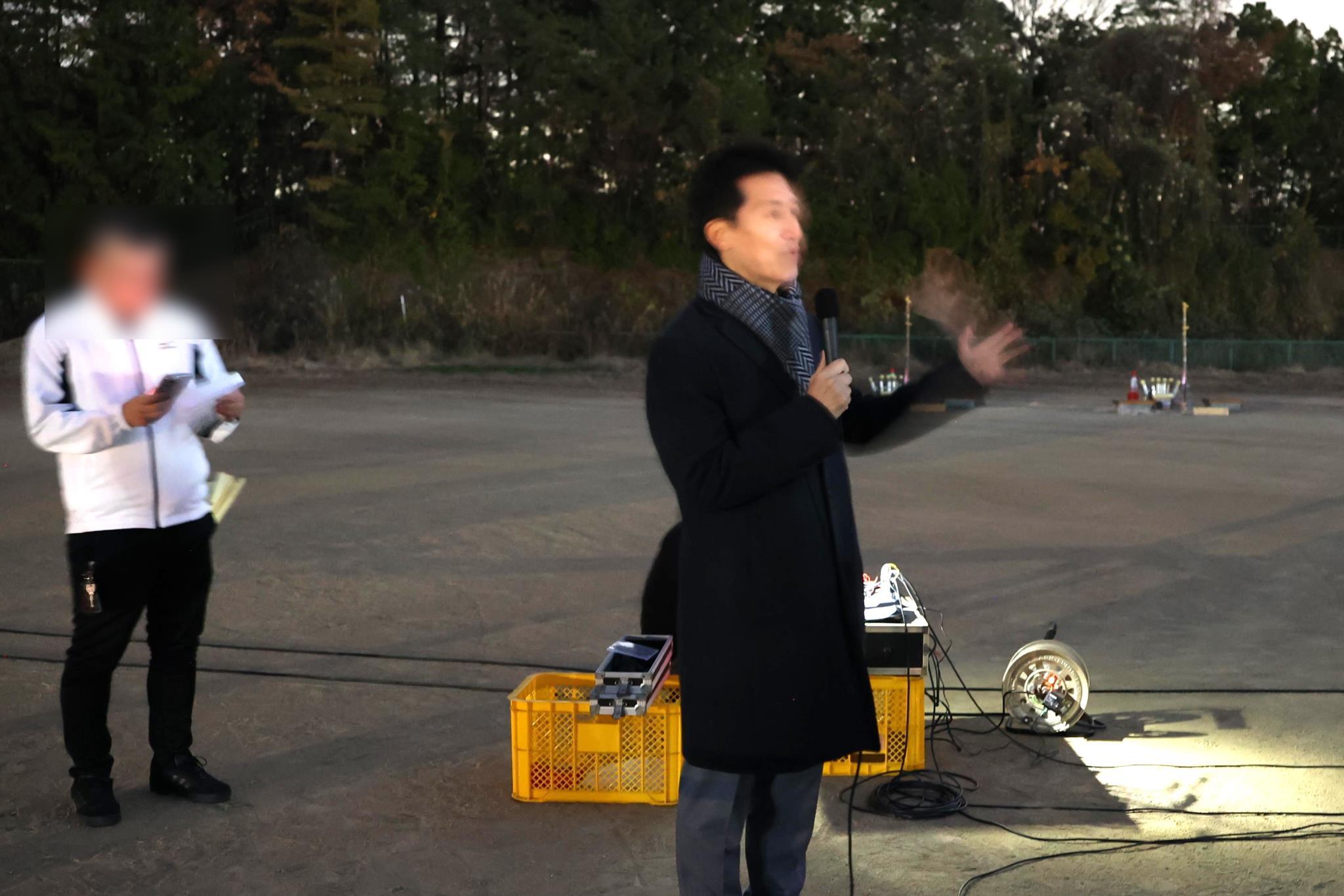 越田市長は既に到着しておりこれから点灯式のあいさつ。